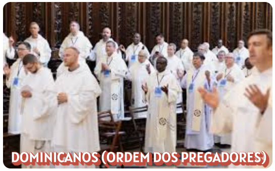 Os Dominicanos, ou Ordem dos Pregadores, são uma ordem religiosa católica fundada em 1216 por São Domingos de Gusmão com a missão de pregar a palavra de Deus. Não são monges, mas sim frades que vivem em comunidades (conventos), seguindo os votos de pobreza, castidade e obediência. A sua vocação primordial é a salvação das almas através da pregação e do estudo da fé, combatendo a heresia e vivendo uma vida apostólica de contemplação e ação.