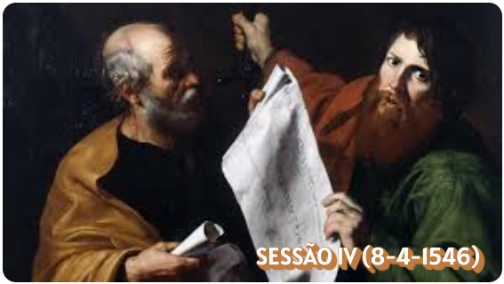 783. O sacrossanto Concílio Ecumênico e Geral de Trento, reunido legitimamente no Espírito Santo, e com a presidência dos mesmo três legados da Sé Apostólica, tendo sempre isto diante dos olhos que, rejeitados os erros, seja na Igreja conservada a pureza do Evangelho, prometido antes nas Escrituras Santas pelos profetas, o qual Nosso Senhor Jesus Cristo Filho de Deus, primeiramente com sua própria palavra o promulgou e depois, por meio de seus Apóstolos, mandou pregá-lo a toda criatura (Mt 18, 19 s; Mc 16, 15), como fonte de toda a verdade salutar e disciplina dos costumes. Vendo que esta verdade e disciplina estão contidos nos livros escritos e nas tradições orais, que – recebidas ou pelos Apóstolos dos lábios do próprio Cristo, ou dos próprios Apóstolos sob a inspiração do Espírito Santo – chegaram até nós como que entregues de mão em mão, fiéis aos exemplos dos Padres ortodoxos, com igual sentimento de piedade e reverência aceita e venera todos os livros, tanto os do Antigo, como os do Novo Testamento, visto terem ambos o mesmo Deus por autor, bem como as mesmas tradições que se referem tanto à fé como aos costumes, quer sejam só oralmente recebidas de Cristo, quer sejam ditadas pelo Espírito Santo e conservadas por sucessão contínua na Igreja Católica. E para que não surja dúvida a alguém a respeito dos livros que são aceitos pelo mesmo Concílio, resolveu ele ajuntar a este decreto o índice dos Livros Sagrados. São portanto os que a seguir vão enumerados: