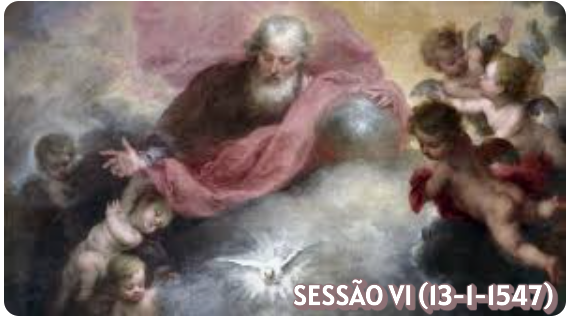 792 a. Em vista da doutrina errada que nestes tempos se tem espalhado não sem dano para muitas almas e grave detrimento para a unidade da Igreja, para louvor e glória de Deus Onipotente, para tranqüilidade da Igreja e salvação das almas, o sacrossanto Concílio Ecumênico e Geral de Trento, legitimamente congregado no Espírito Santo…, tem a intenção de expor a todos os fiéis de Cristo a sã e verdadeira doutrina da justificação, ensinada pelo sol de justiça (Mal 4, 2), Cristo Jesus, autor e consumador de nossa fé (Hb 12, 2), transmitida pelos Apóstolos e sempre retida pela Igreja Católica sob a direção do Espírito Santo e manda mui severamente que para o futuro ninguém ouse crer, pregar ou ensinar de outro modo do que está determinado e declarado no presente decreto.