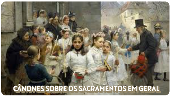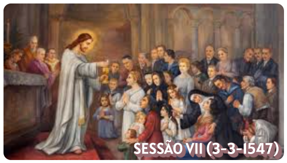 843a. Para concluir a salutar doutrina da justificação, que na Sessão anterior foi declarada com o consenso comum dos Padres, achou-se conveniente tratar dos santíssimos sacramentos da Igreja, pelos quais toda a verdadeira justiça ou começa, ou começada aumenta, ou perdida é reparada. Por isso, o sacrossanto Concílio Ecumênico e geral de Trento..., para eliminar os erros e extirpar as heresias a respeito destes santíssimos sacramentos que, embora já tivessem sido condenadas outrora pelos nossos Padres, voltaram novamente à tona em nossos dias, ou também surgidos de há pouco, que muito mal fazem à pureza da Igreja Católica e à salvação das almas — baseando-se na doutrina das Sagradas Escrituras, nas tradições apostólicas e no consenso dos outros Concílios e dos Padres — julgou dever estatuir e decretar os presentes cânones...: