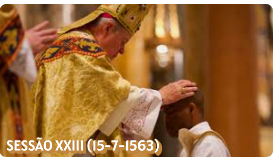 963. Cân. 3. Se alguém disser que a Ordem ou sacra ordenação não é verdadeiro e próprio sacramento instituído por Cristo Nosso Senhor, ou que é uma invenção humana, excogitada por pessoas ignorantes das coisas eclesiásticas, ou que somente é um rito de eleger ministros da palavra de Deus e dos sacramentos — seja excomungado [cfr. n° 957, 959].