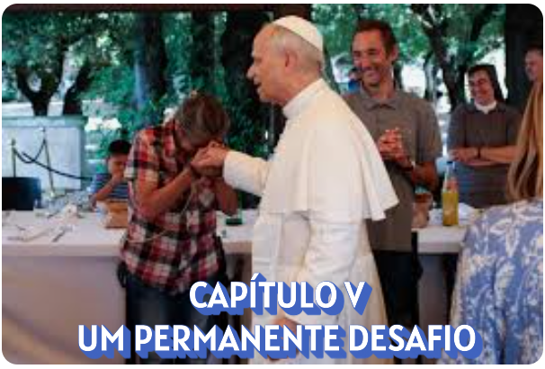 104. O cristão não pode considerar os pobres apenas como um problema social: eles são uma “questão familiar”. Pertencem “aos nossos”. A relação com eles não pode ser reduzida a uma atividade ou departamento da Igreja. Como ensina a Conferência de Aparecida, «solicita-se dedicarmos tempo aos pobres, prestar a eles amável atenção, escutá-los com interesse, acompanhá-los nos momentos difíceis, escolhê-los para compartilhar horas, semanas ou anos de nossa vida, e procurando, a partir deles, a transformação de sua situação. Não podemos esquecer que o próprio Jesus propôs isso com seu modo de agir e com suas palavras».