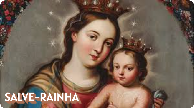 Salve, Rainha, mãe de misericórdia, vida, doçura e esperança nossa, salve! A vós bradamos os degredados filhos de Eva. A vós suspiramos, gemendo e chorando neste vale de lágrimas. Eia, pois, advogada nossa, esses vossos olhos misericordiosos a nós volvei, e depois deste desterro mostrai-nos Jesus, bendito fruto do vosso ventre, ó clemente, ó piedosa, ó doce sempre Virgem Maria.