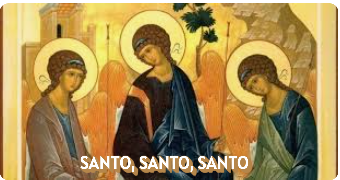 Santo, santo, santo, Senhor Deus dos exércitos. Os céus e a terra proclamam a vossa glória. Hosana nas alturas. Bendito o que vem em nome do Senhor. Hosana nas alturas.