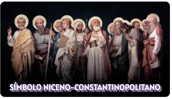 Creio em um só Deus, Pai todo-poderoso, criador do céu e da terra, de todas as coisas visíveis e invisíveis. E em um só Senhor Jesus Cristo, Filho unigênito de Deus, nascido do Pai antes de todos os séculos; Deus de Deus, Luz da luz, Deus verdadeiro de Deus verdadeiro; gerado, não criado; consubstancial ao Pai; por quem todas as coisas foram feitas; que por nós homens e pela nossa salvação desceu dos céus e se encarnou [pelo poder] do Espírito Santo, [do seio] da Virgem Maria e se fez homem; e também por nós foi crucificado sob Pôncio Pilatos; padeceu e foi sepultado; ressuscitou ao terceiro dia, segundo as Escrituras, e subiu ao céu; está sentado à direita do Pai e de novo há de vir em sua glória para julgar os vivo e os mortos; e o seu reino não terá fim. E no Espírito Santo, Senhor que dá a vida, e que procede do Pai e do Filho, e que com o Pai e o Filho é adorado e glorificado, Ele, que falou pelos profetas. E na Igreja una, santa, católica e apostólica. Confesso um só batismo para a remissão dos pecados. E espero a ressurreição dos mortos e a vida do mundo que há de vir. Amém.